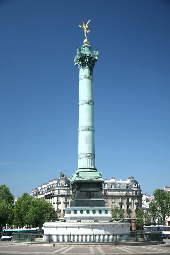 Der Place de la Bastille in Paris. Hier stand das berühmte Gefängnis, das beim Sturm auf die Bastille am 14 Juli 1789 von den Aufständischen erstürmt wurde